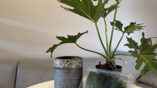 フィロデンドロン 【DAISO産】フィロデンドロン・クッカバラ|セロームに似たアイツ フィロデンドロン・クッカバラの特徴と用土配合を解説|セロームよりもコンパクトに育つのでテーブル観葉としても◎|陶器鉢へ植え替えの様子を紹介 2025.09.18 フィロデンドロン観葉植物