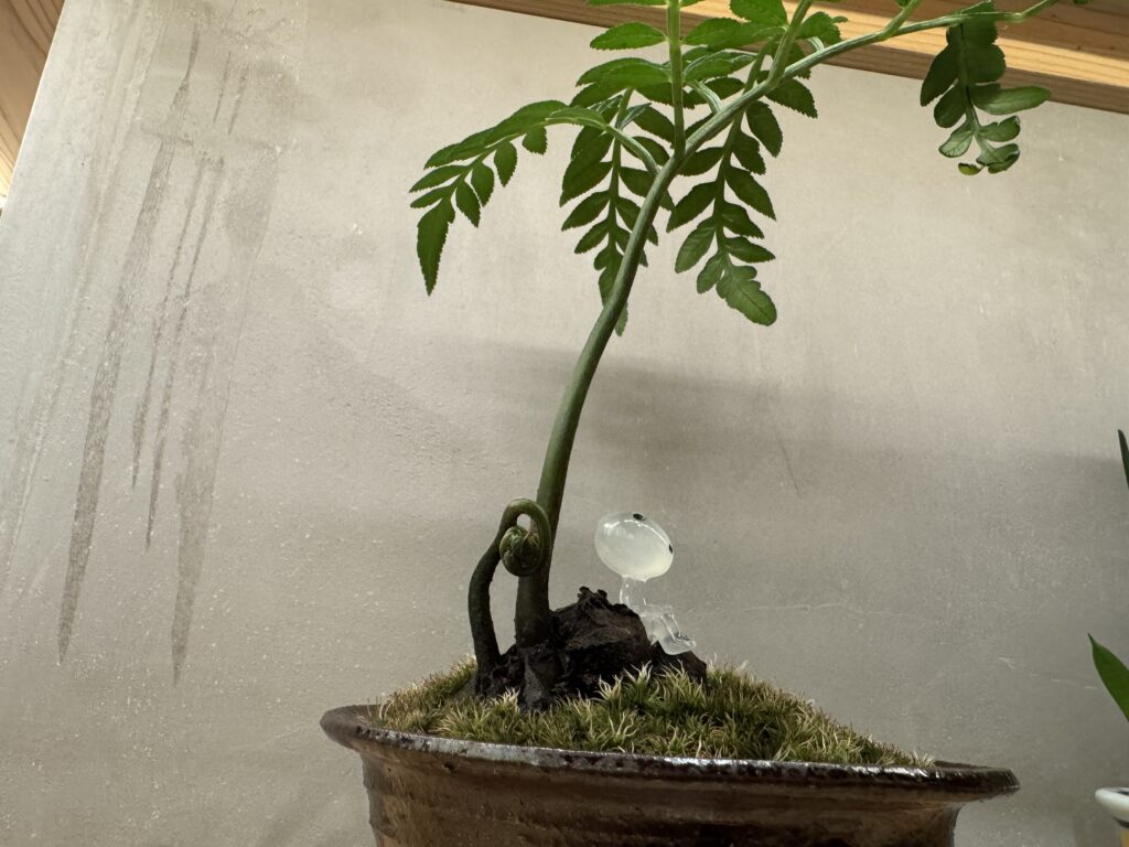 ゼンマイのような葉先が丸まった状態で起き上がりつつあります。