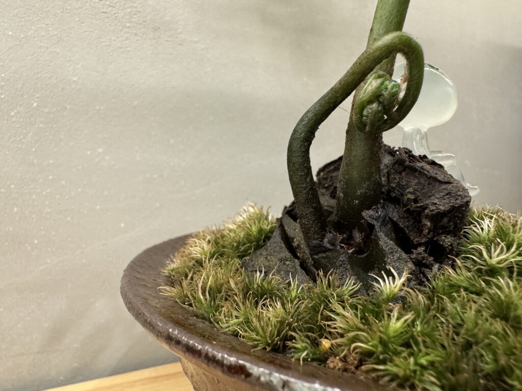 重心を左側に寄せ、盆栽の「懸崖樹形」のように仕立てたつもりでしたが