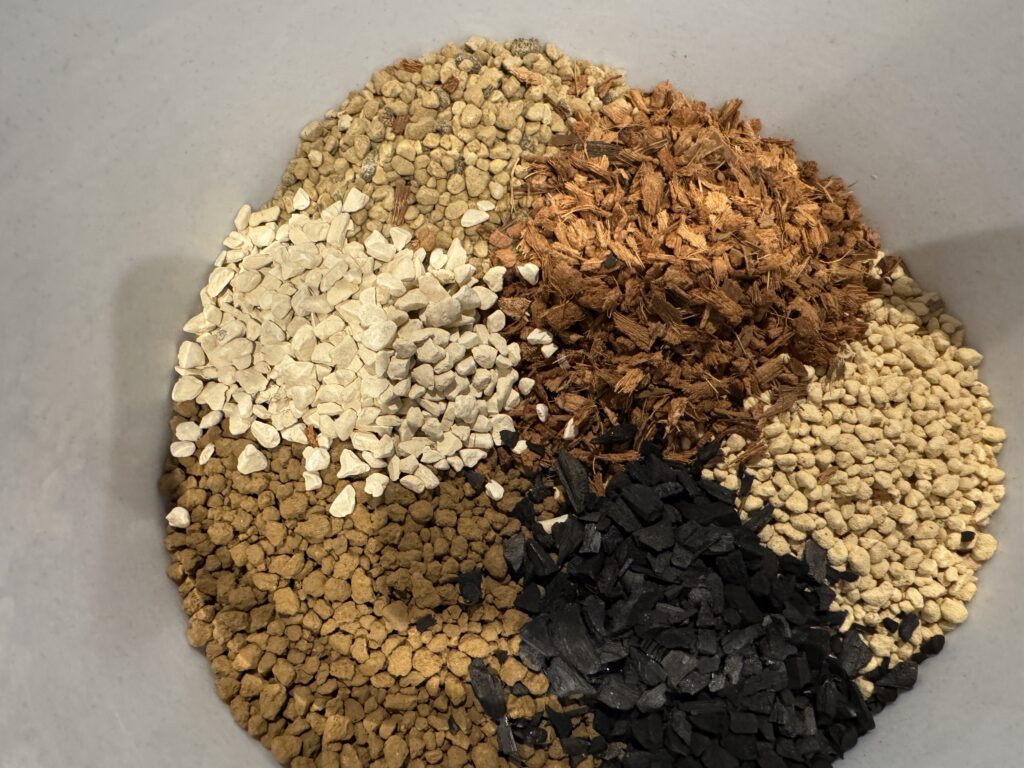 鹿沼で少し酸性に寄せつつ、日向土とベラボンで空気を入れてやることで