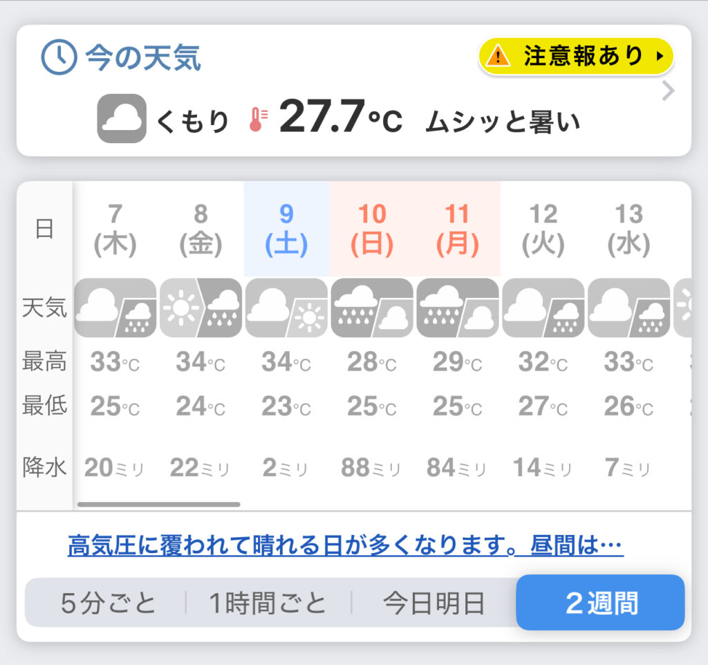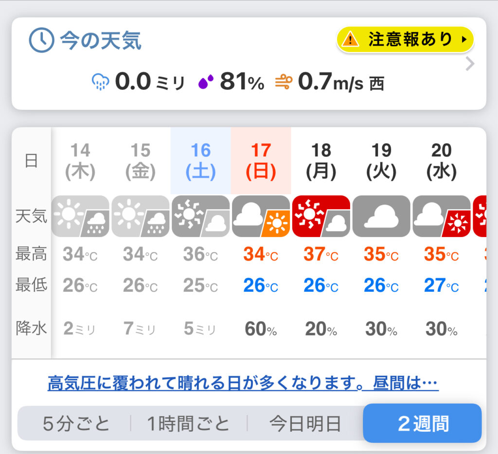 午前中は日差しが強く、夕方にドサっと降ってすぐに止むといった日を繰り返していました