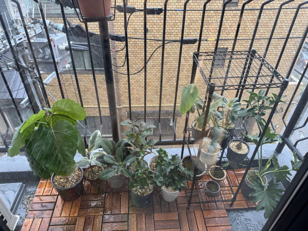 4階で屋根はあるが東西に外壁は無く、風通し良好(むしろ強すぎるくらい)
