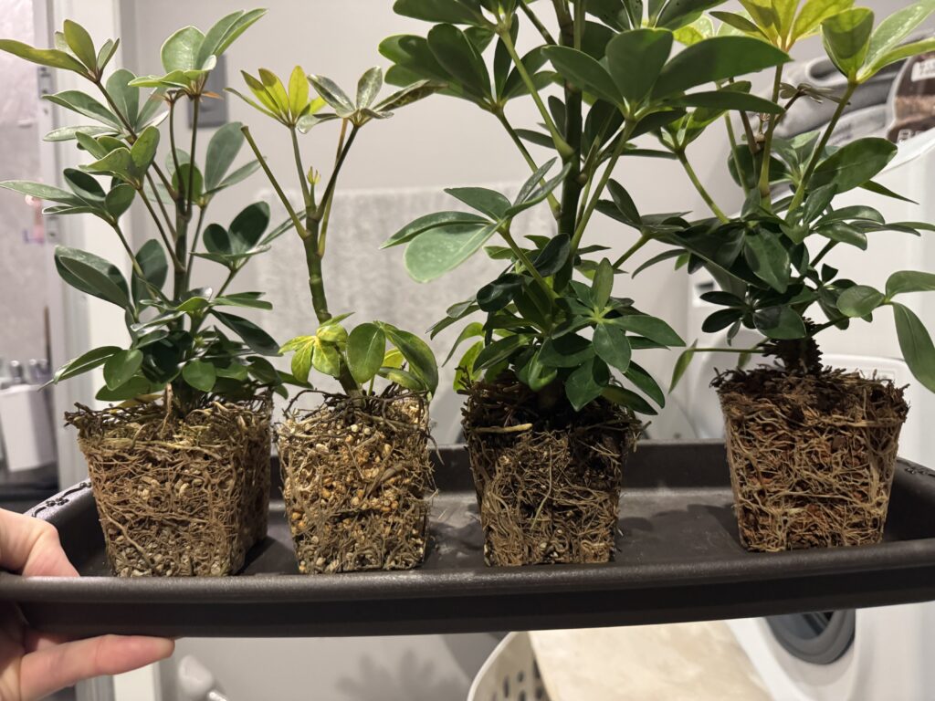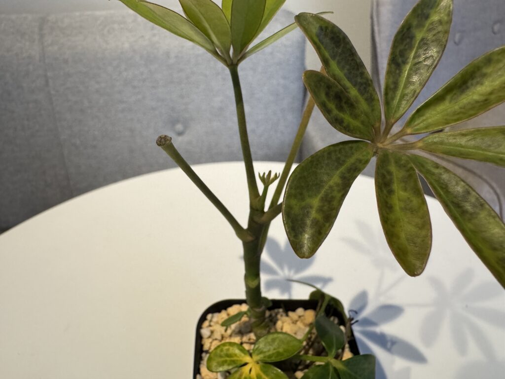 ホームセンターで販売されていたミニシェフレラ(カポック)たちを実験体に。